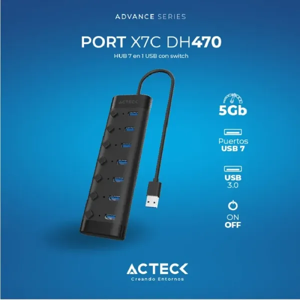HUB ACTECK X7 DH4701 PORTATIL 7 EN 1 USB 3.0 NEGRO (AC-937054)