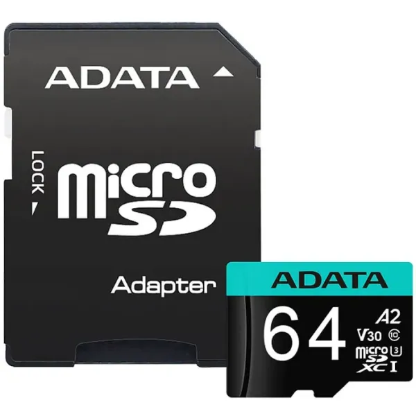 MEM MICRO SDXC ADATA 64GB UHS-I U3 V30S A2 C/A AUSDX64GUI3V30SA2-RA1