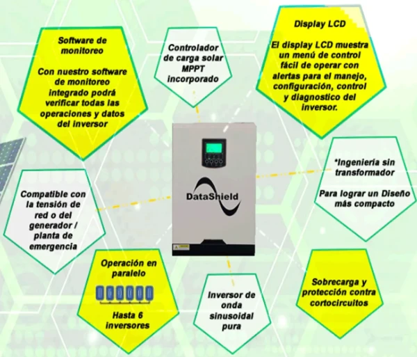 DATASHIELD INVERSOR / CONTROLADOR SOLAR IS-3000 3000VA/2400W HÍBRIDO