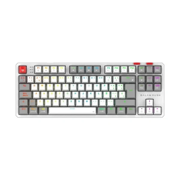 TECLADO GAMER BALAM RUSH BR 940375 LEVEL PRO GK990 LED RGB TKL OUTEMU RED INALAMBRICO BLANCO