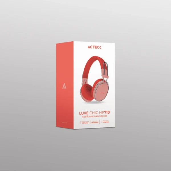 AUDIFONOS ACTECK INALAMBRICOS LUXE CHIC HP710 BT5.4 RECARGABLES SALMON
