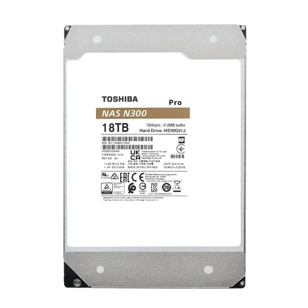 DISCO DURO INTERNO TOSHIBA N300 PRO 18TB 3.5" NAS SATA 7200RPM 512MB (HDWG51JXZSTB)