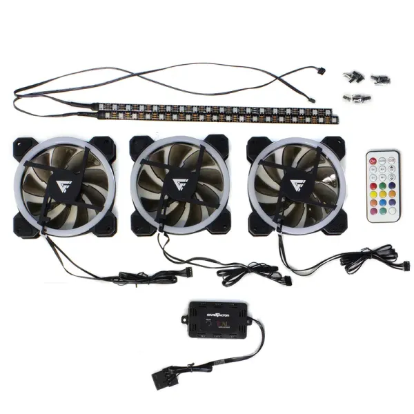 KIT DE 3 x VENTILADORES GAME FACTOR, CONTROLADOR, DOBLE ANILLO FKG400