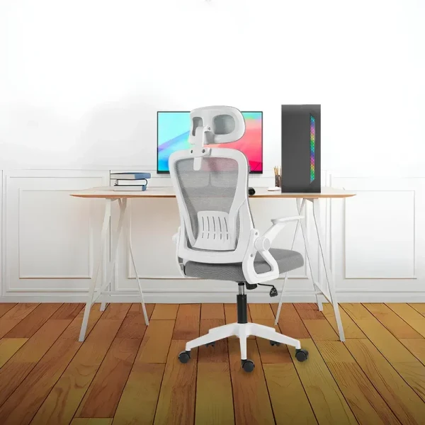 SILLA OFICINA ACTECK FLUX EC313HR 100 KG MARCO BLANCO - MALLA GRIS