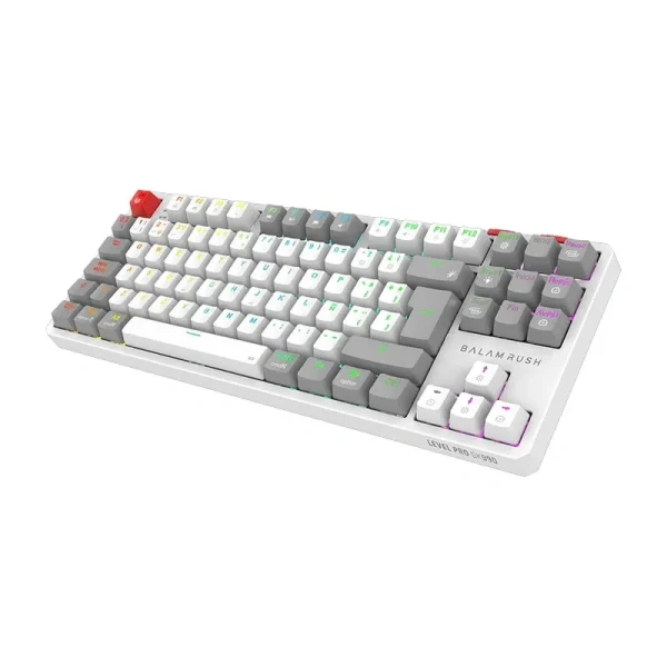 TECLADO GAMER BALAM RUSH BR 940375 LEVEL PRO GK990 LED RGB TKL OUTEMU RED INALAMBRICO BLANCO